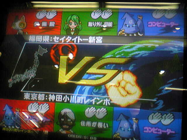 しかし、自分たち娯楽のために行くのではない。 日本の技術を見学し、その知識で部に貢献させるのである。 ようするに学習だ! ふざけてはいけないし、真面目に行動しなければならない。 わかったか!! さて、 遊ぶぞぉおおぉぉぉぉぉぉぉぉぉぉぉぉぉおお! これは、馬鹿すぎて面白い。 あなたは ビシバシチャンプオンライン を知っているか!? いや、別に知らなくても生きていけるんだけどさ、 このゲームで遊んだので説明! 学校の部活帰り、高雄(自分)と夏鶯(部長)と蒼霧(主力)とでゲームセンターに行ってみた。 最初は蒼霧さんの得意のゲーム、タイムクライシス4とポップンでもするのかと思い、一銭も使う予定はなかった。 (ちなみに蒼霧さんはタイムクライシス4を1コイン・ノーダメでクリアできる。・・・・・・おそるべし) しかし、部長の何気ない一言で事態は急展開を迎えるっ! ビシバシチャンプを見ながら、部長が一言、 夏鶯「一回やってみようかな」 ここで、自分が止めたらよかったのかどうかは知らんが、 「とりあえず、やってみれば?」と言ってみる。 そして、何故だか自分、蒼霧さんも加わり3人ですることに、 何故自分がゲームに参加したのかといえばノリであろう。それ以外には考えられん。 そんなわけで、初ビシバシチャンプスタート! ゲームはいたって簡単、単純ってか簡単すぎるだろ! という仕様で、某任天堂のメイド・イン・ワリオシリーズを思い出してもらいたい。 あのほぼボタン一つしか使わないくそげー(失礼)をアーケード型にしたような感じで、要するに 単純操作のくそげー・・・・・・じゃなくてミニゲームが大量に出てきて それをクリアしていくのである。 ▲全体はトーナメント式 ▲そして、バトル! そして、とりあえず、最初にすることが、 キャラと名前の選択である。 しかし、どちらも決まっており、新しくは入れられない。(例外あり) キャラは ・魚屋 ・不良? ・レスラー ・女子高生? ・博士 ・猫 ・インド人? ・体育服の女子?? 等と意味のわからないキャラしか選べない。 そして、名前は自分が覚えているだけで、 ・ふけ顔 ・3倍速い ・取り外し可能 ・ブーメラン ・住所が長い ・おやつにカルビ丼 ・伊集院 ・グリコーゲン など、一般人でなくても理解不能、解読不能、意味不明な名前ばかりで 正直自分はこのボケの出し惜しみがないところが正直面白いと思う。 ちなみに、自分らは、 高雄…俺流 夏鶯…サカナ顔 蒼霧…県庁所在地 を選択、やはり名前は意味わからん。 次に、ゲームを教えたいが このままでは突っ込み箇所があまりにも長いので次回へつづく 一応、これでも4日かかっている。まぁ、1日数10分しか使ってないが・・・。 では、